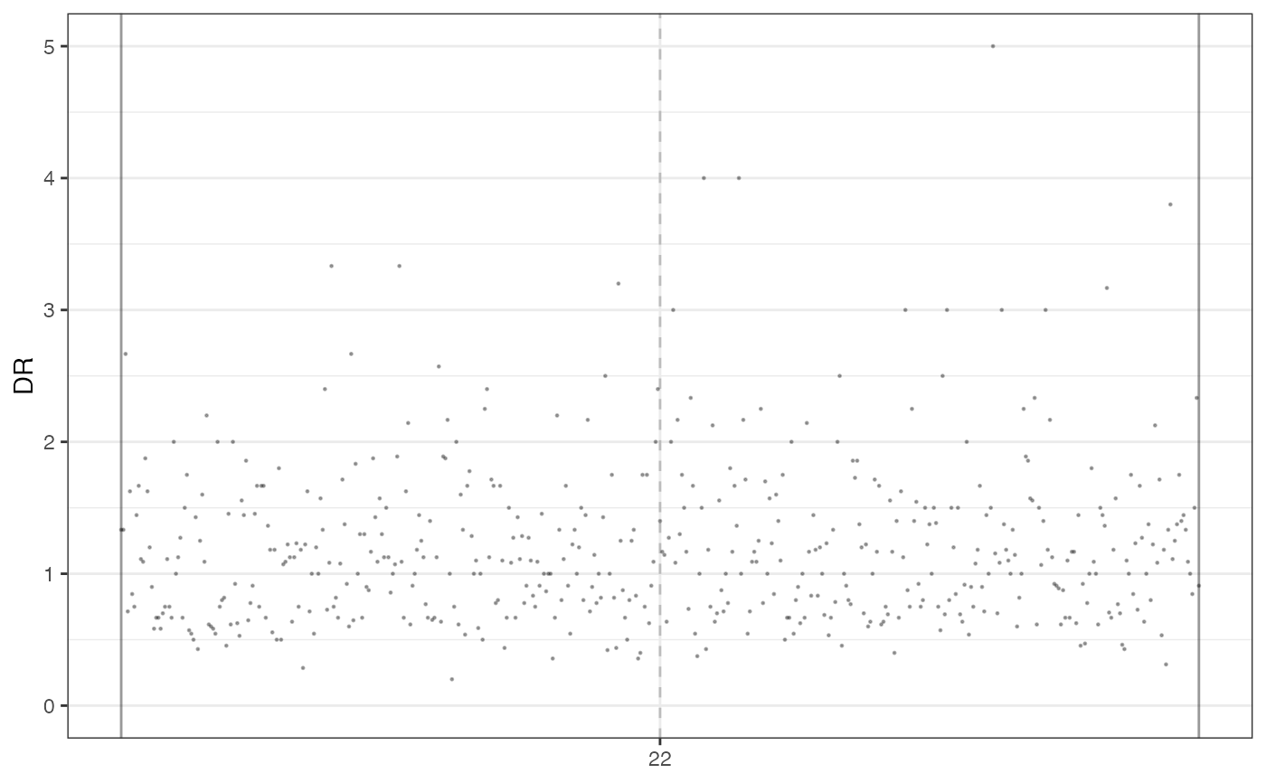 This function plots the genome-wide Depth Ratio (DR) of a specific sample.